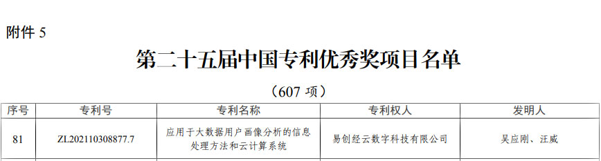 我司发明专利“应用于大数据用户画像分析的信息处理方法和云计算系统”(专利号:ZL202110308877.7;专利发明人:吴应刚、汪威)荣获中国专利奖优秀奖。该项专利技术聚焦于大数据用户画像分析,通过创新性的信息处理方法和云计算系统,能够精准、高效地对海量用户数据进行挖掘和分析,为企业提供更为精确、全面且具有深度的用户画像,帮助企业深入了解用户需求,优化产品与服务,提升市场竞争力。